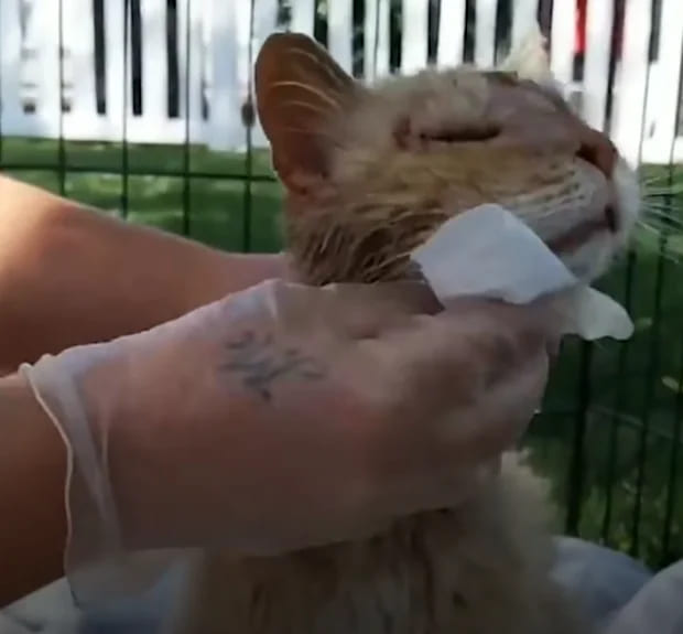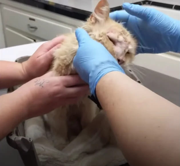 The unfortunate cat was carefully persuaded into the carrier by the rescuers, who then took him to the doctor to be inspected. They initially mistook the cat for a female, but later learned that he was a male.