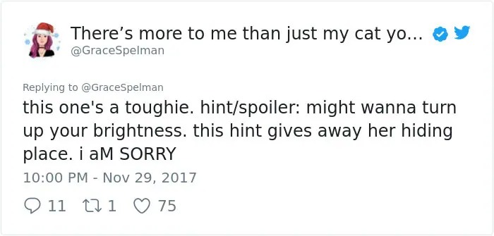 Every cat owner has experienced the irony of not being able to find their furry friends, but turns out they were hiding right under the bag you left there 3 days ago. Cat loves hide and seek, but as owners, we clearly don’t want to our buddies to go missing. However, for Grace Spelman, a New York-based writer and comedian, this game is a unique routine between her and her cat, Pierogi.