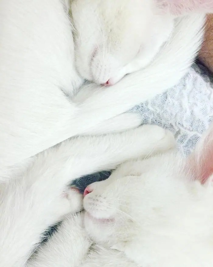 “Breeds like Turkish Vans, Angoras, and many others are often confused with us. However, we might disappoint you. There’s a name for it: “crossbred” or “metis.” This has to be the wonder of Mother Nature that we were born blond with heterochromia. Our mom is white, and dad is white and black.” – A lucky cat daddy exposed the truth when so many people asked him about the breed that these two gorgeous own back in 2016.