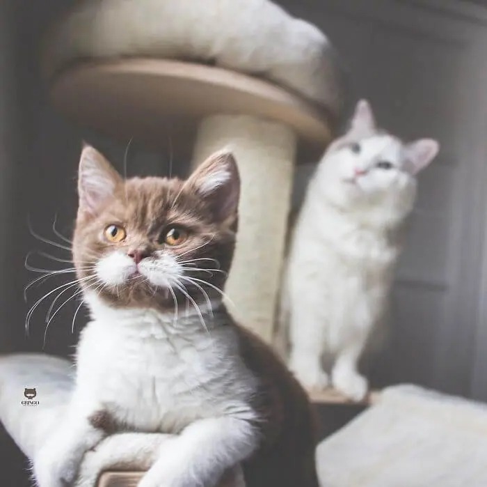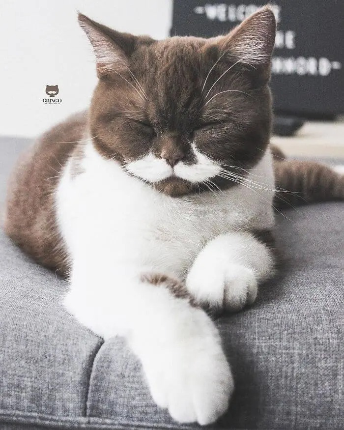 Gringo is a British shorthair kitty with a purrfect mustache and his picture on a popular French cattery site caught Sabrina and Romain eyes. They decided to bring him home although they already had another cat named Milko. Gringo was 3 months old when they took it home, and these kitties instantly became brothers for life. And voilà! They’re completely inseparable.