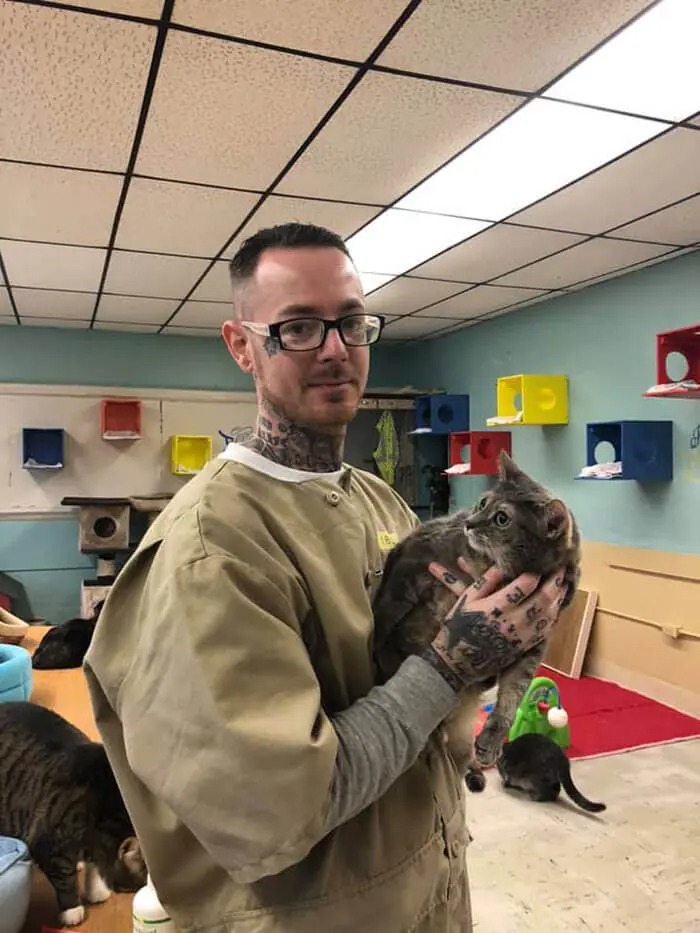 The concept behind the program was to take cats from a shelter and allow inmates of the correctional facility to take care of them