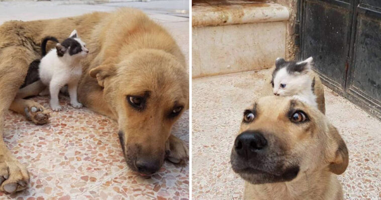 Junior the kitten took one look at Amira the dog and decided Amira should be her mom — and the kitten wasn’t going to take “no” for an answer.