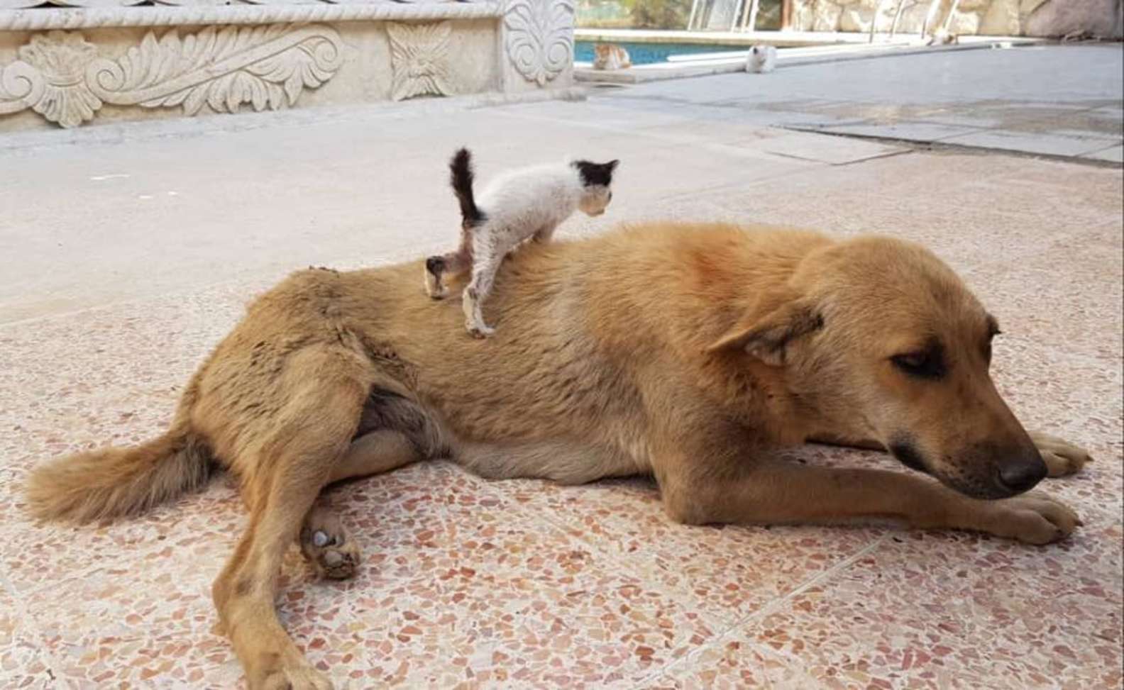 “We found them together,” Abidin said. “And the kitten was riding her [Amira], and she is completely fine. She even seemed to smile.”