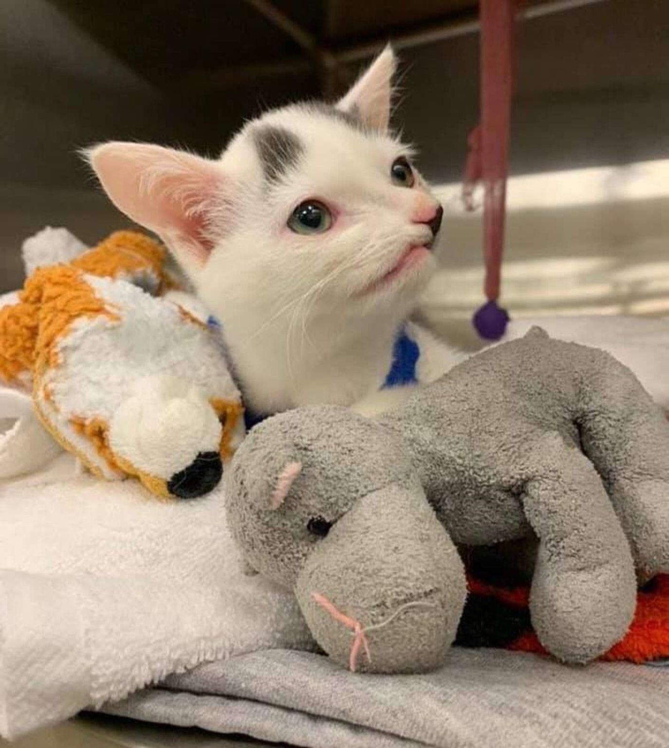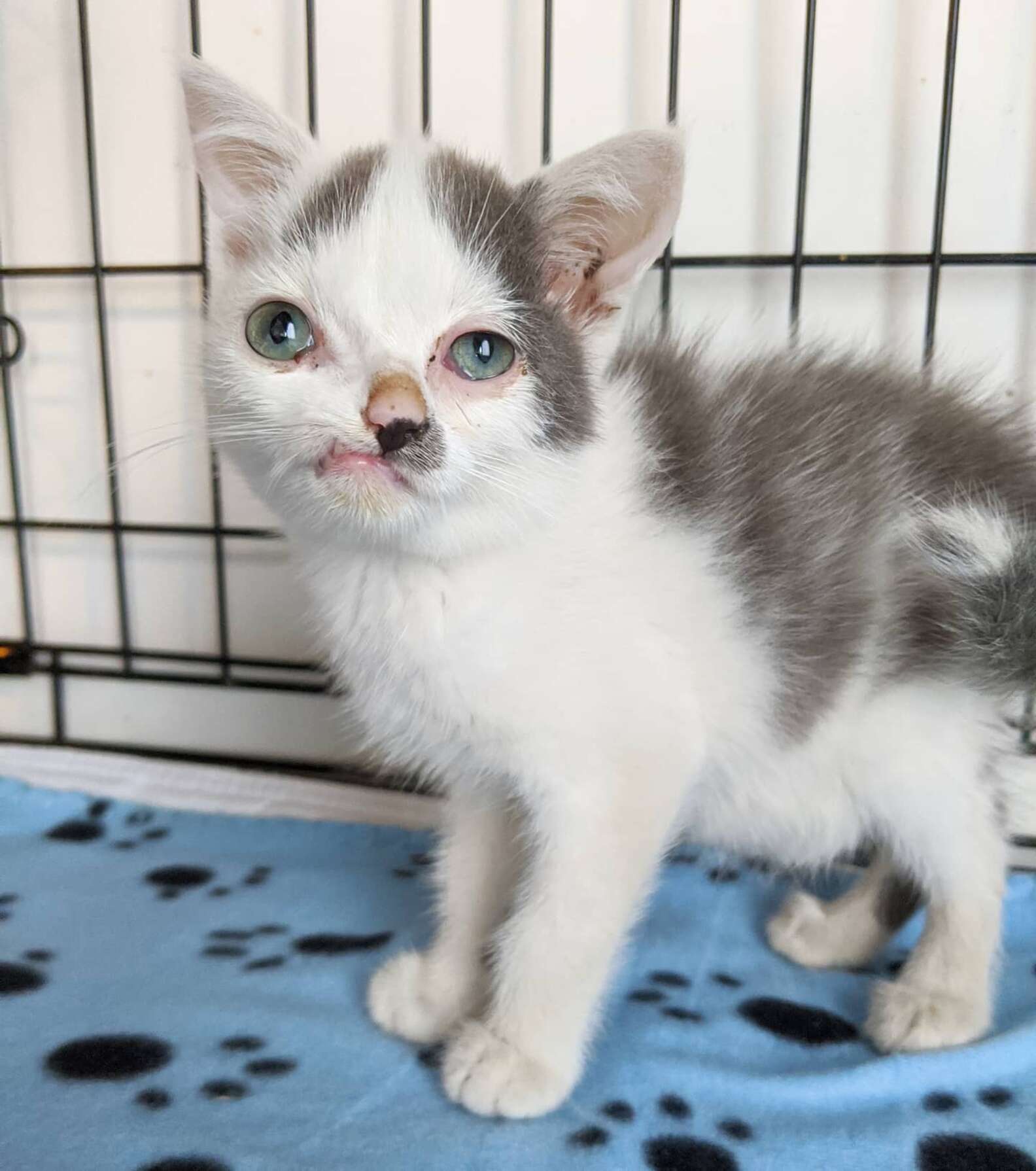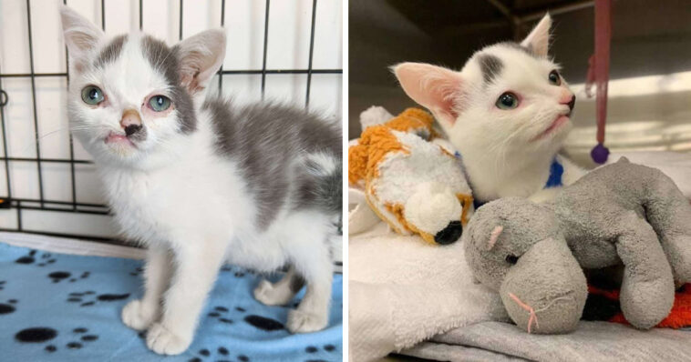 Pinocchio will require a special home to adore him as he is after he has been cleared for adoption. Pinocchio’s lopsided grin is caused by the kitten’s crooked face, and he refuses to stop smiling no matter what.