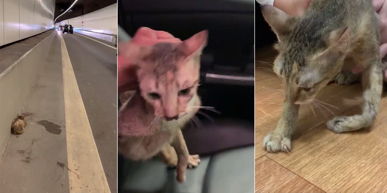 Masz Masuri, as he was going to work from the car without a kitten injured in the KPE tunnel and documented it with a video sharing it on Facebook.