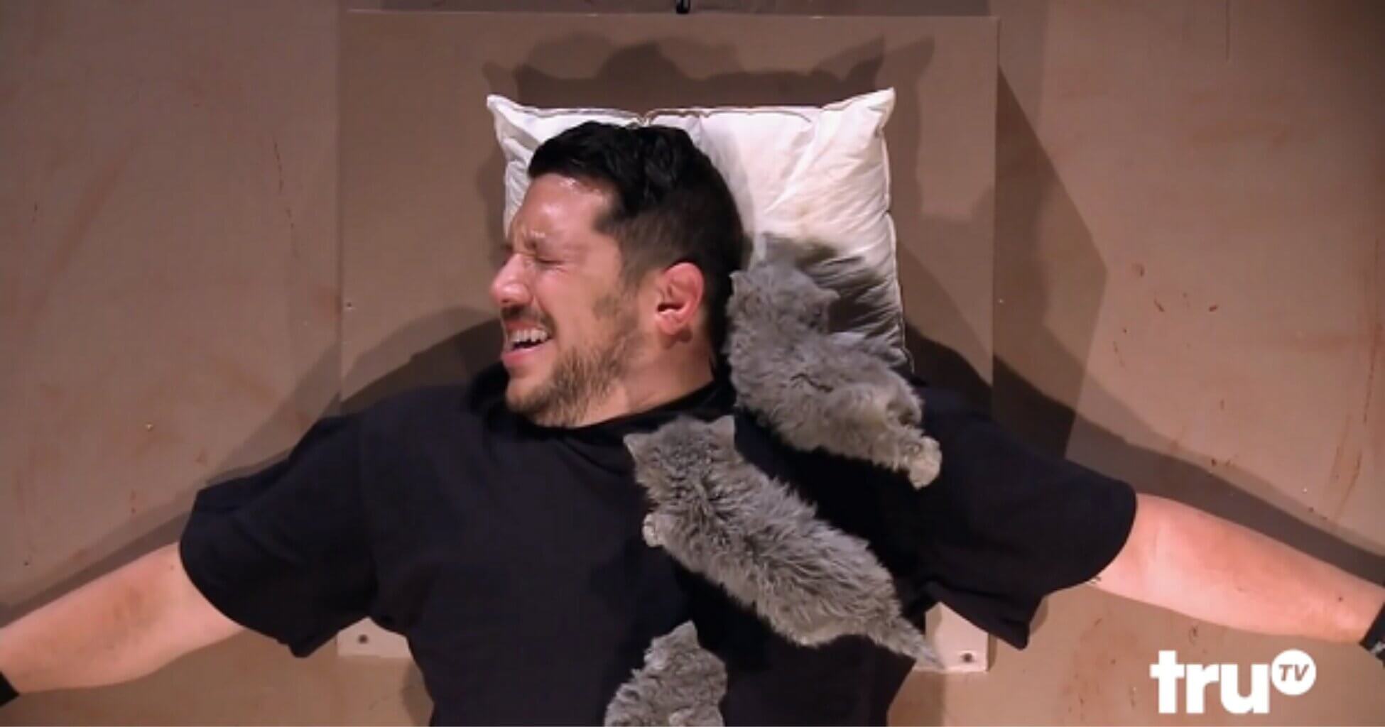 Sal, A Man Who Is Deathly Afraid Of Cats, Is Tied Down By His Friends And Covered With Kitties