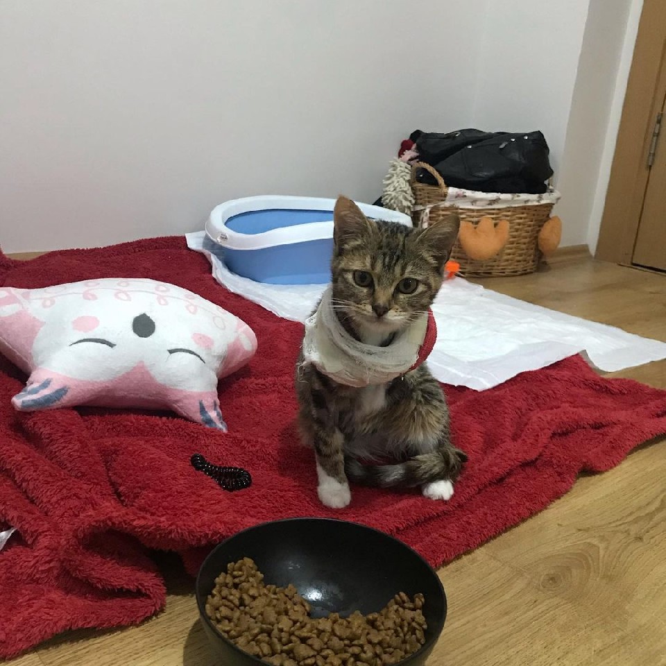 The action of today’s narrative took place in Istanbul, Turkey. An injured kitten with a problem with one of her paws came at the Ashen veterinary clinic one day. Because of the seriousness of the injuries, the shelter where the little girl was brought had to transport her to the clinic right away.