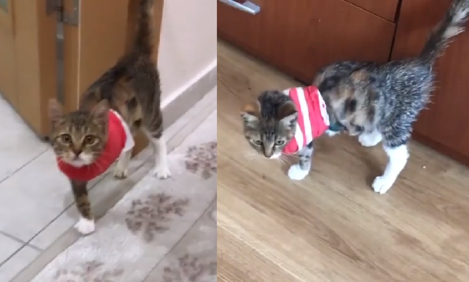 This kitten is incredibly active; he runs, jumps, and climbs like any other four-legged cat, and he has developed a lovely bond with Hayko, a kitten who is paralyzed from the waist down and belongs to Ashen’s family.