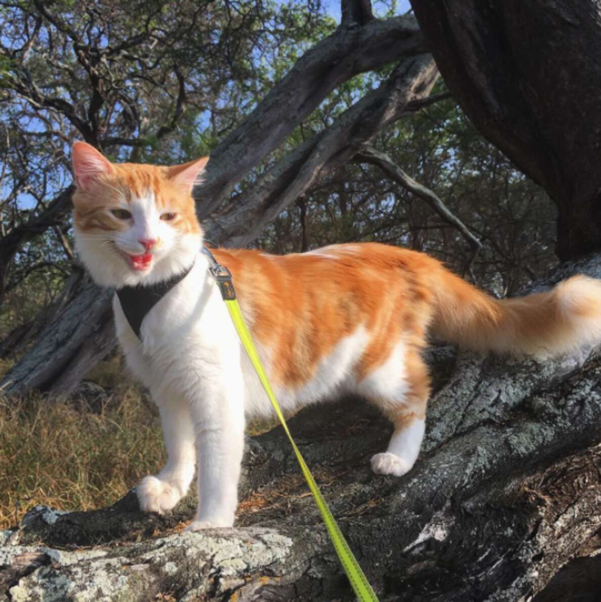“I wanted to have an adventure cat who could go out safely on a leash and enjoy the outdoors with me, but also not be contributing to the big issue of free roaming cats killing billions of wildlife each year,” Christie said. “I picked [Atlas] because of his brave and outgoing personality.”