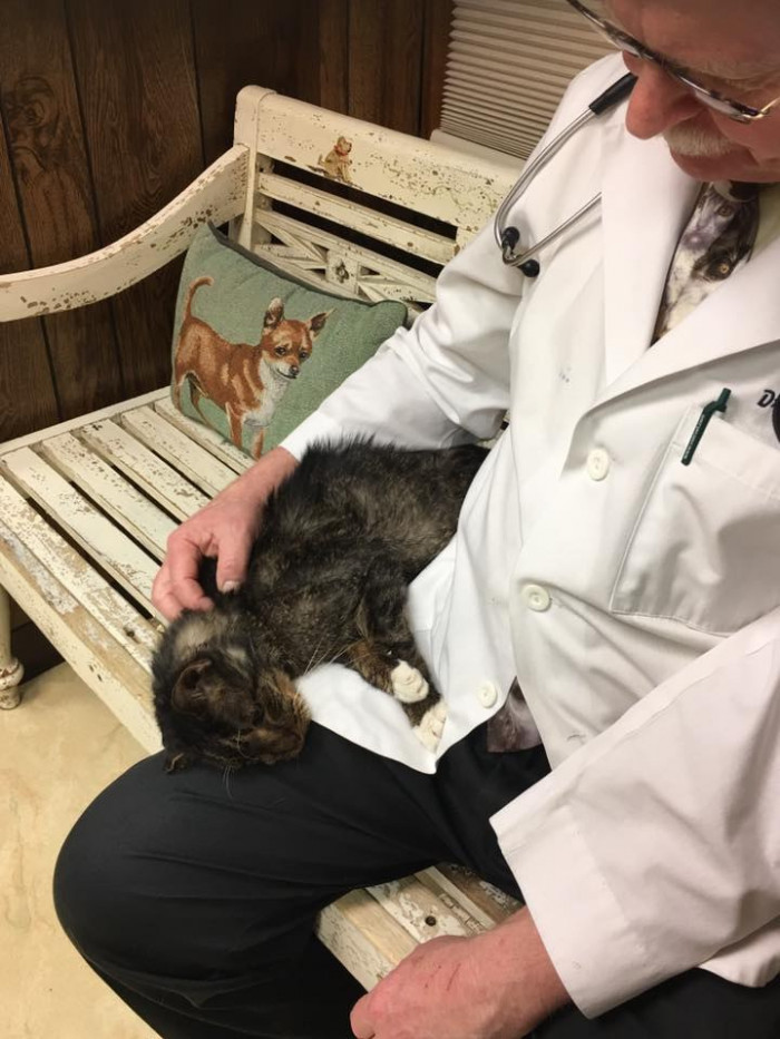 Barnaby is old, and he doesn’t always have the hunger he needs to stay in shape, but his nurses spoon feed him cat food gravy and additional vitamins in a cat food formula since he is so adored.