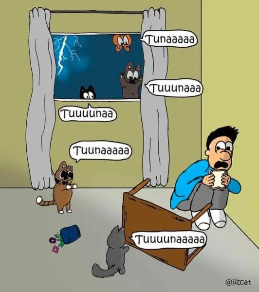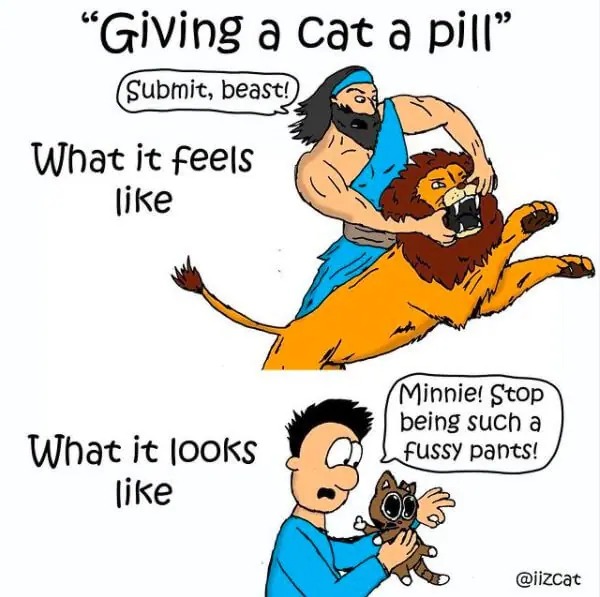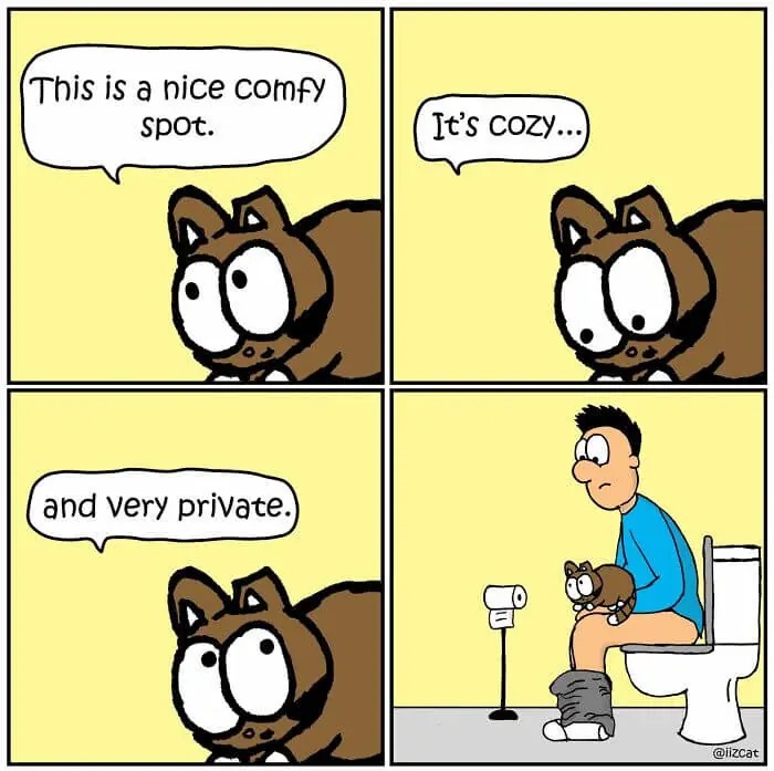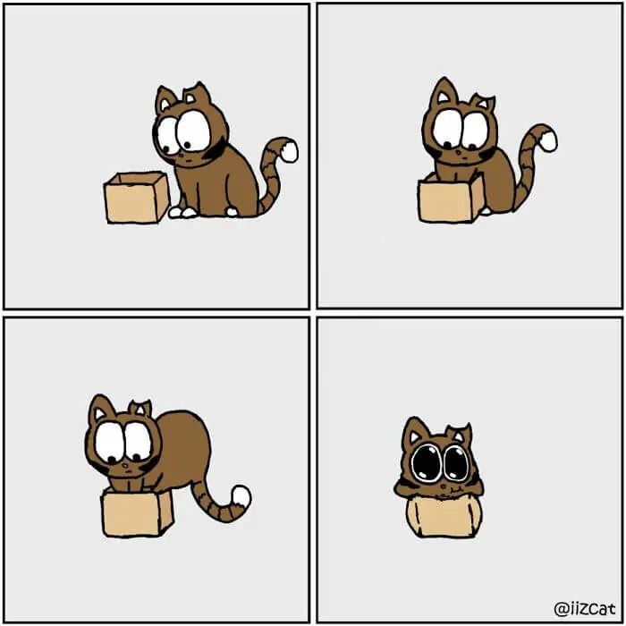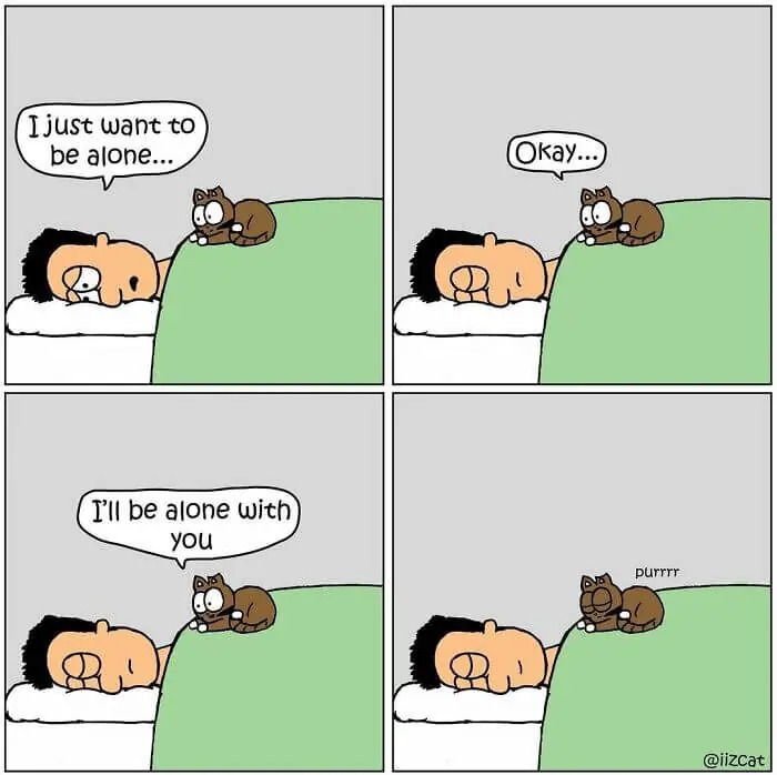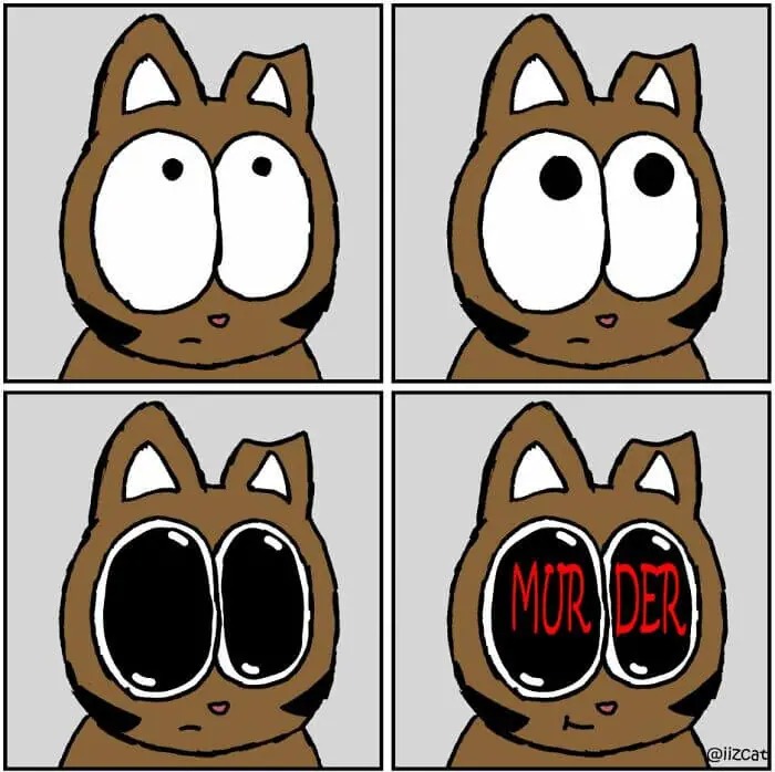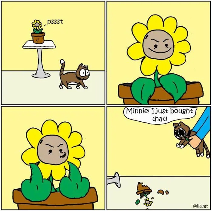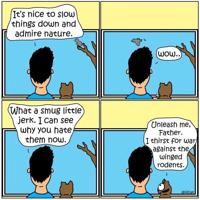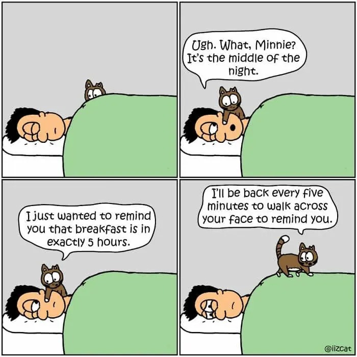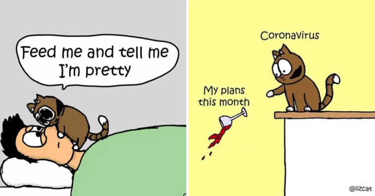 The Instagram @iizcat is where artist Nick Filippou posts his daily life as a cat dad with his feline – Minnie. Looking at his comics, cat owners can’t be any more sympathetic with these hilariously accurate situations. On the other hand, non-cat owners can have a peak in the life of cat parents and the joy and struggles they have with a cat.