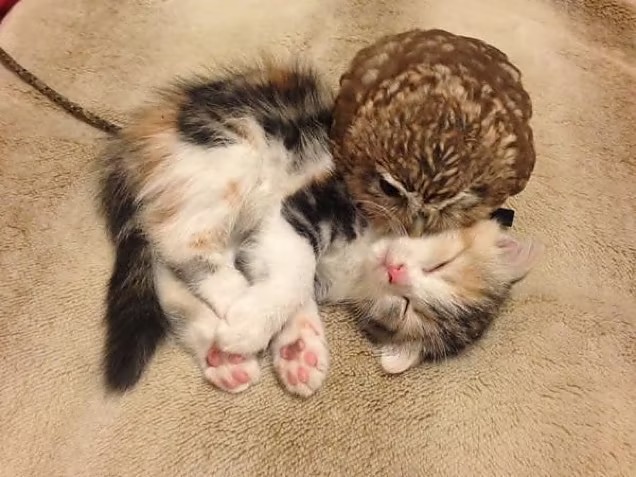 Cleo the owl and Forbi the cat are best buds. They’ve known each other for a long time and have always been very close despite their differences.