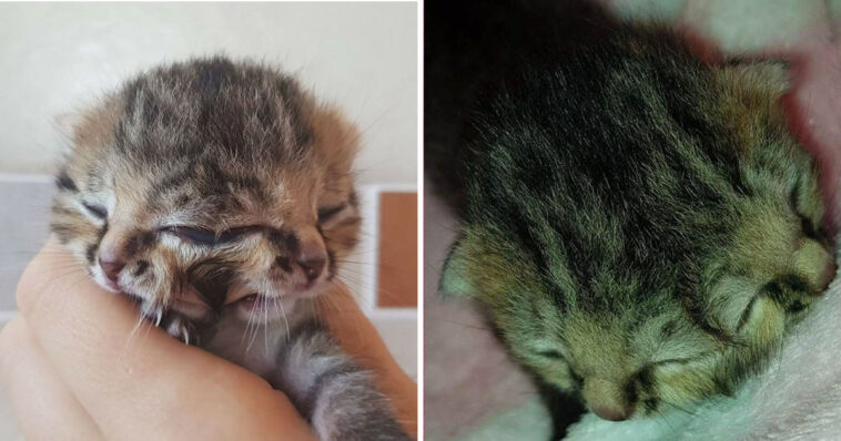 On December 12th, a kitten was born as part of a litter of three in Eastern Cape, South Africa. Unlike her siblings, the kitten stood out because she had two mouths, two noses, and three eyes. The kitten’s disability made it impossible for her to nurse, so a loving volunteer stepped in to give this kitten a fighting chance at life.