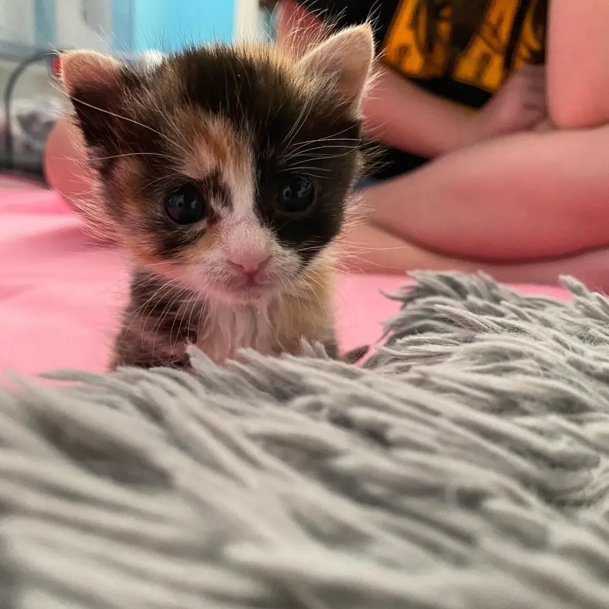 A beautiful calico cat was rescued by the Foster Kitty Family rescue facility in San Jose, California, USA. Mack was given a name, and she was in the company of her siblings, who need immediate attention and bottle feeding 24 hours a day.