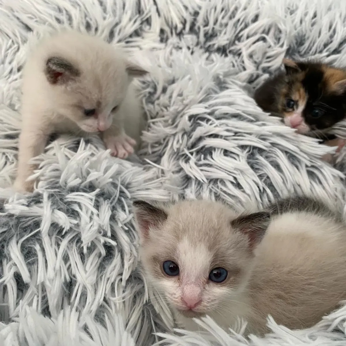The three brothers are thriving under the care of the rescue center and their foster family; they have even learned to eat from a plate like big kittens.