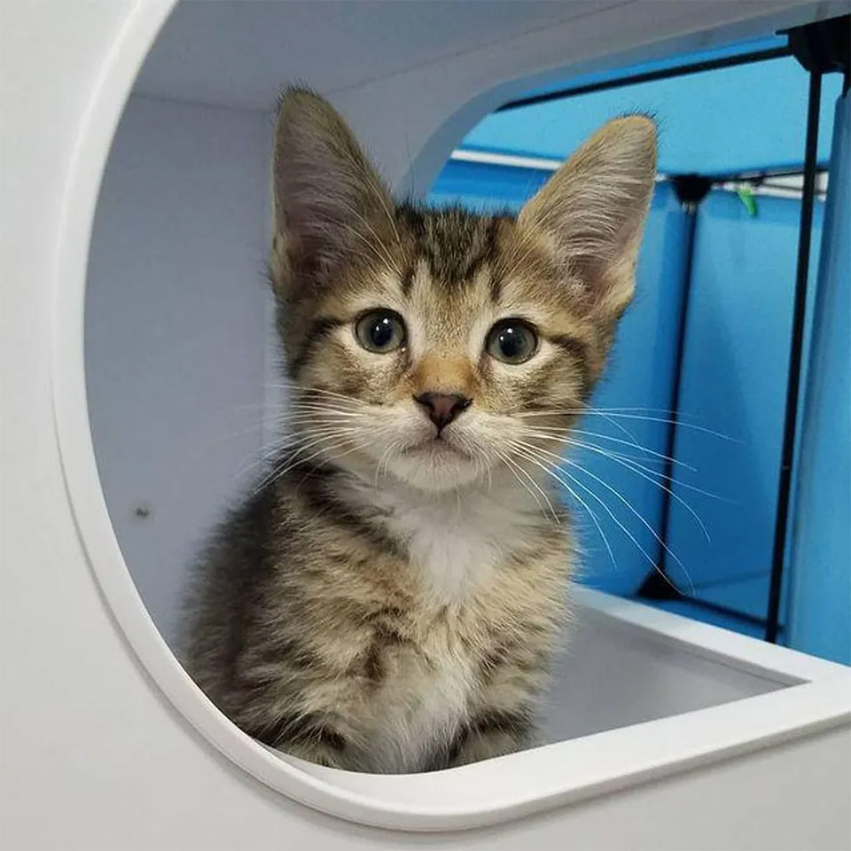 Pico, the tabby cat, and his siblings were soon available for adoption, but no one was interested in taking the tiny one.