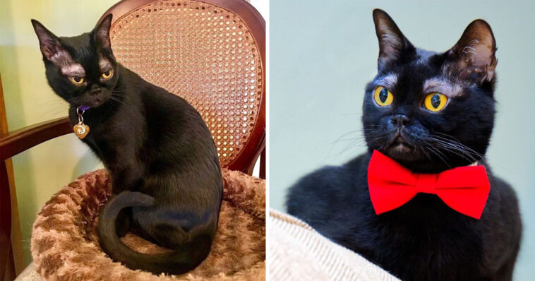 According to his owner, Karen Mellette, Cornelius has had these “eyebrows” since he was a kitten due to a lack of fur in the area between his ears and eyes.