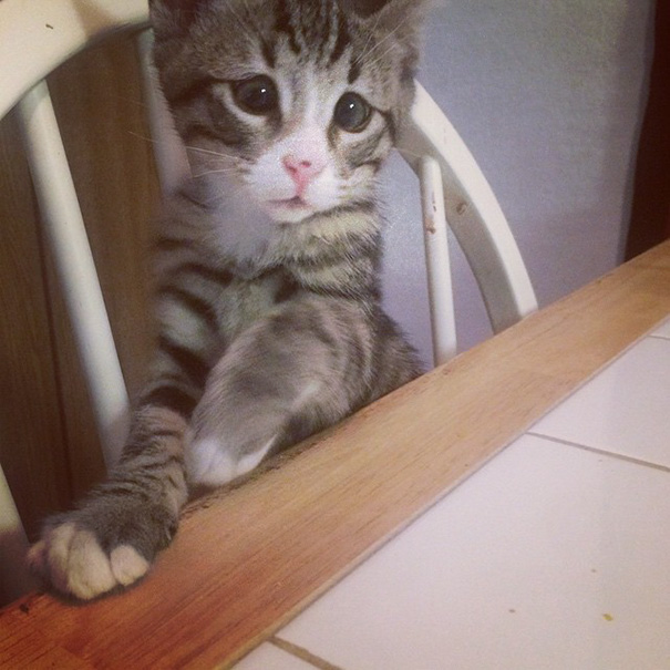 But there’s no need for you to worry—this cross-eyed tabby has already found himself a home!