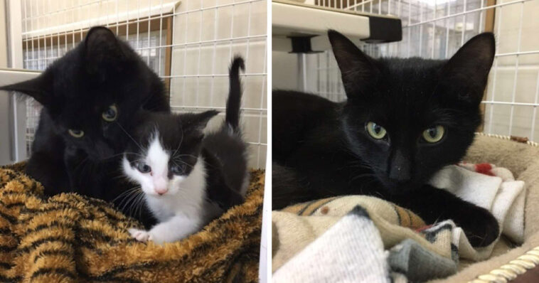“Mom was not a mom at all,” the shelter wrote. “She was a he. That sweet cat taking care of those little babies was a male. He could have been the dad or a big brother from another litter, but to those little kittens he was their protector and surrogate mom.”