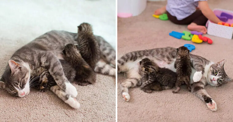 People started to see Mikey happily licking, bathing, cuddling, and feed breasting her new adopted children after 15 minutes. She didn’t feel the same anymore they could tell. They’re now belonged together ever after!