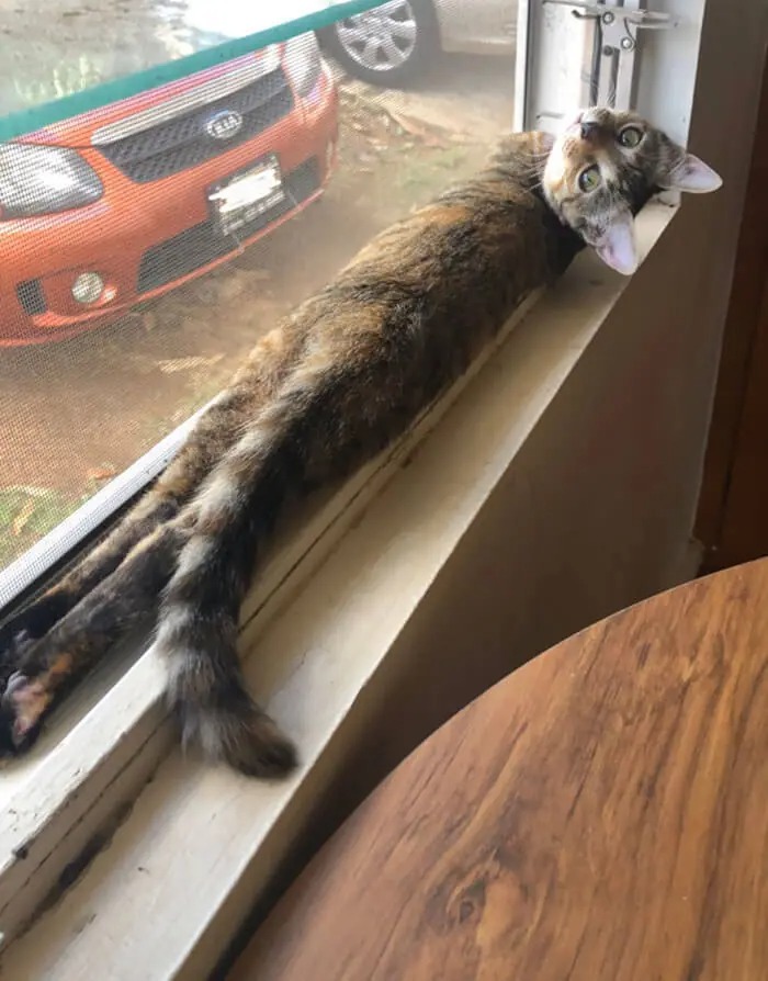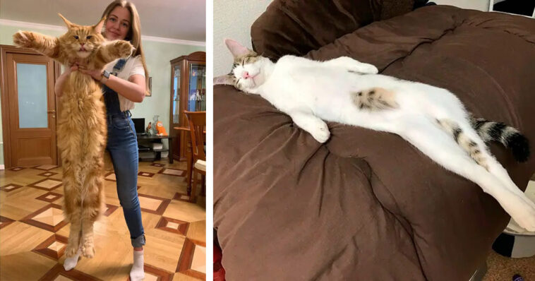 The average cat size from head-to-body is about 46 cm (18 in) and a tail length of 30 cm (12 in). That’s what we’ve come to expect. However, there are several cat species that their size would totally surpass our expectations. Take the Maine Coon, for example, besides their mighty stance and luscious fur, they are also known for their slinky-ish body. One of these magnificent felines has the distinction of world’s longest cat. Stewie is his name, and he is measured to be 123 cm (48.5 in) from tip of nose to tip of tail, according to Guinness World Records. But there are some furry pals is just as “stretchy” as Stewie. Scroll down to see a compilation of the longest cats out there, and see how elastic they can be! Remember to upvote your faves, too!
