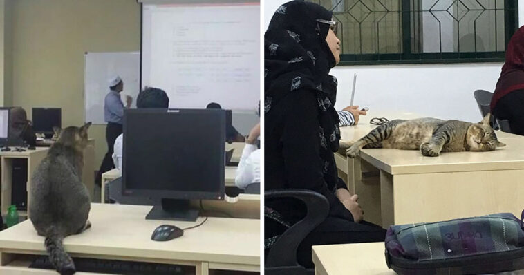 A student from a university in Malaysia tweeted a picture of a cat attending a lecture…