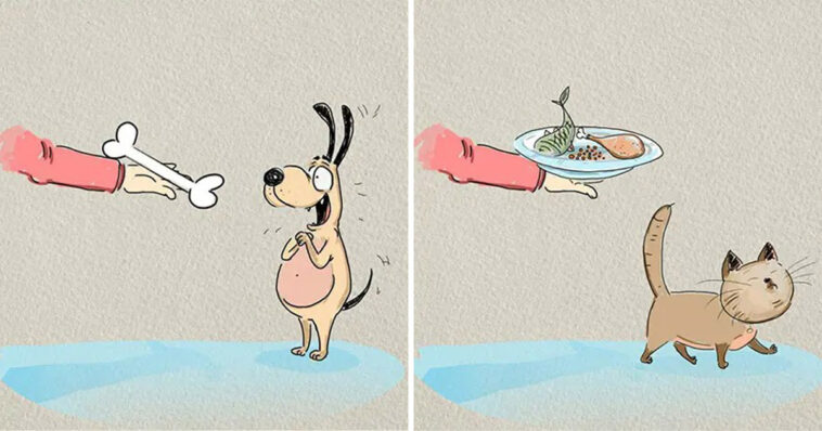 This endless fight between dogs and cats for the better, a Moscow-based artist under the name Bird Born hilariously added more fuel to the fire. He decided to show six big differences between our beloved four-legged friends. In this illustration, the cat is depicted a little on the dark side, but we can’t judge him! People who own a cat will definitely feel him.