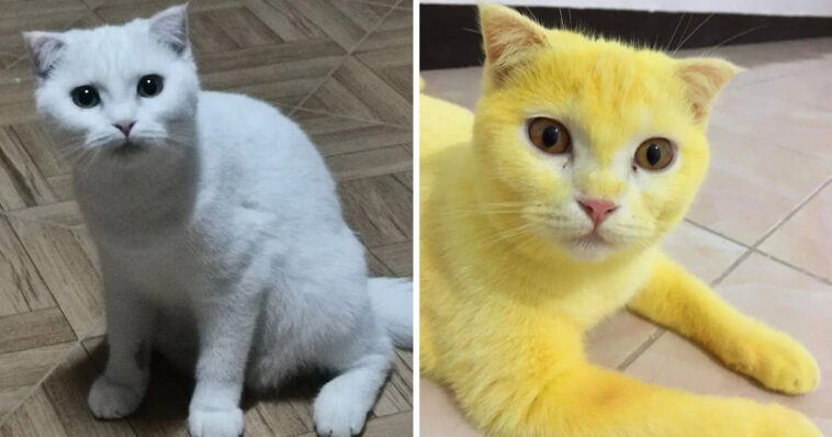 Regardless of the funny fur that her kitty was on, she still wanted to get the white one back for the cat, she explained that the turmeric’s color would be fade away within 3 months.