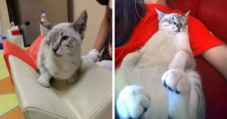 The kitty was attacked by two dogs on the street and luckily a woman saved him and gave him to an organisation