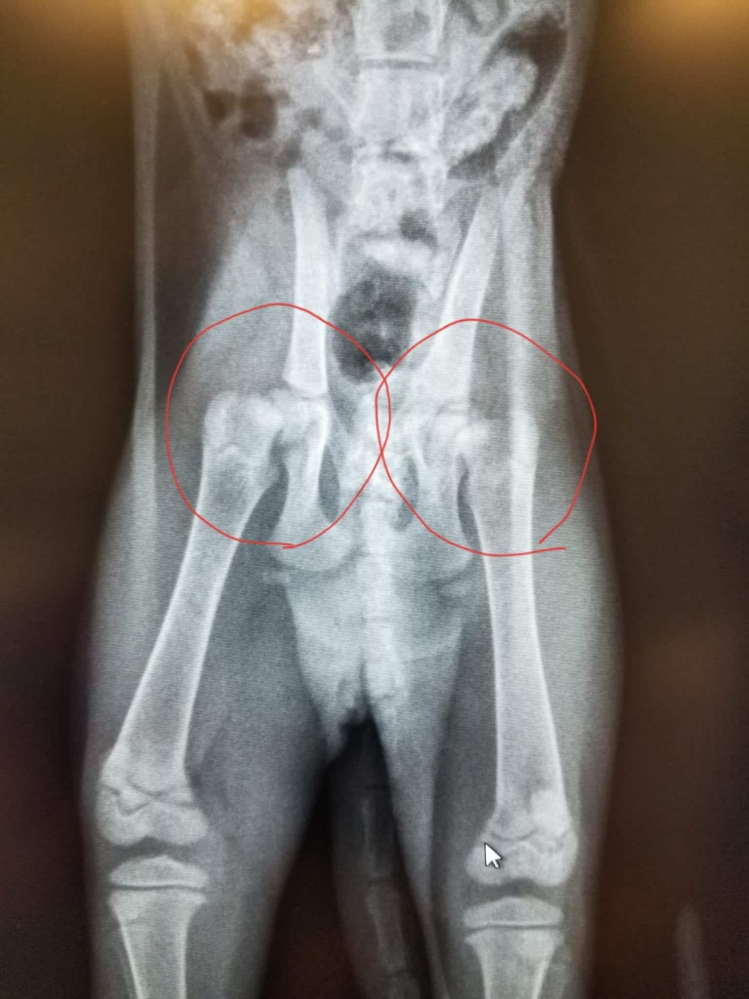 They were not sure if her problems were caused by an inherited disease. The couple thought someone had hit them with a car, or had fallen from above. However, she was only 2 months old at the time. And as soon as the vet examined him with x-rays, they got some sad news.