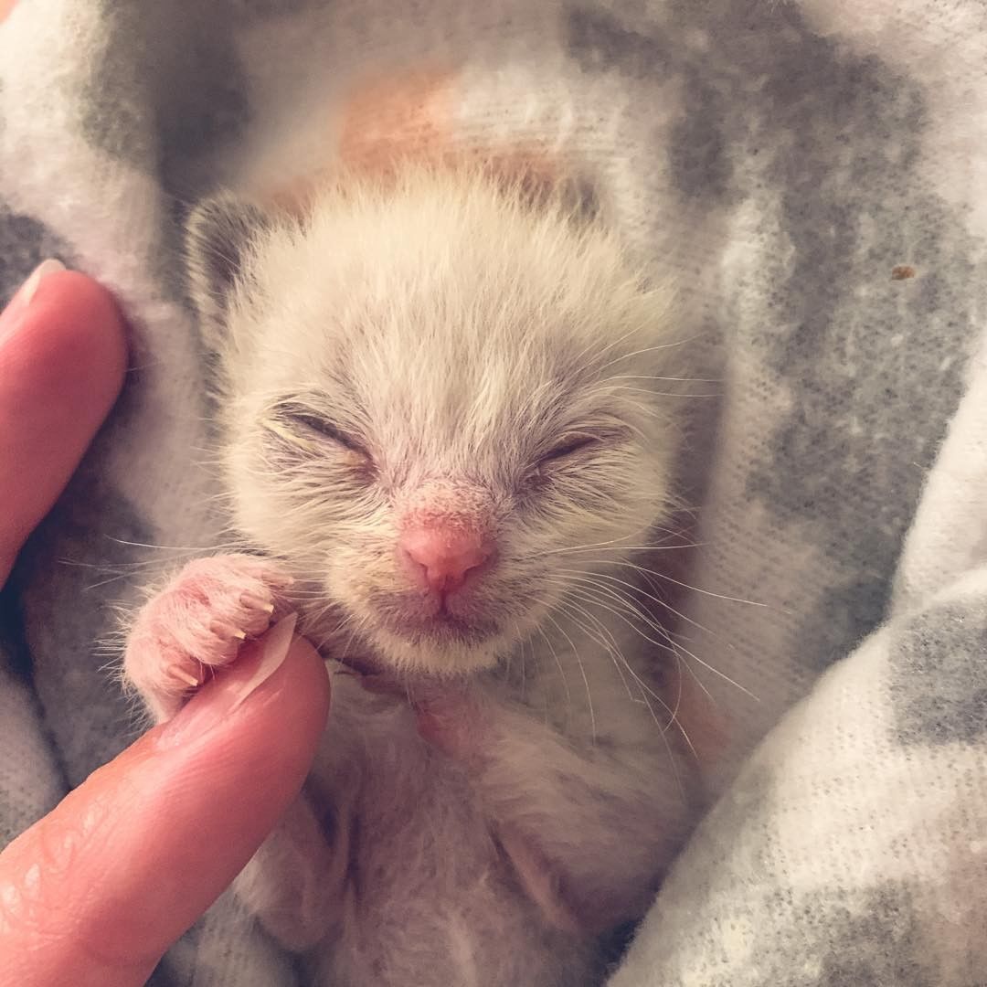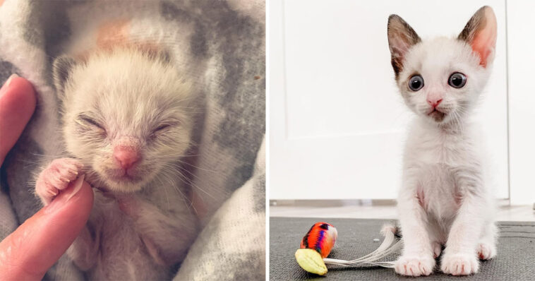 Beth, a Kitty Kottage volunteer, was informed to a little 99-gram kitten with big eyes in desperate need of help. Beth was taken aback by how little the kitten was, despite the fact that it was only three weeks old, when she first saw it.