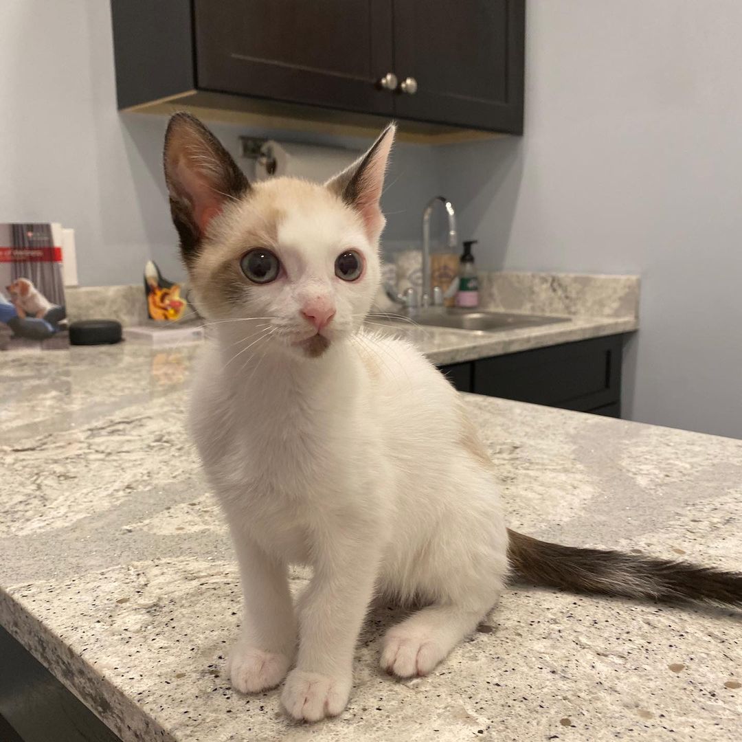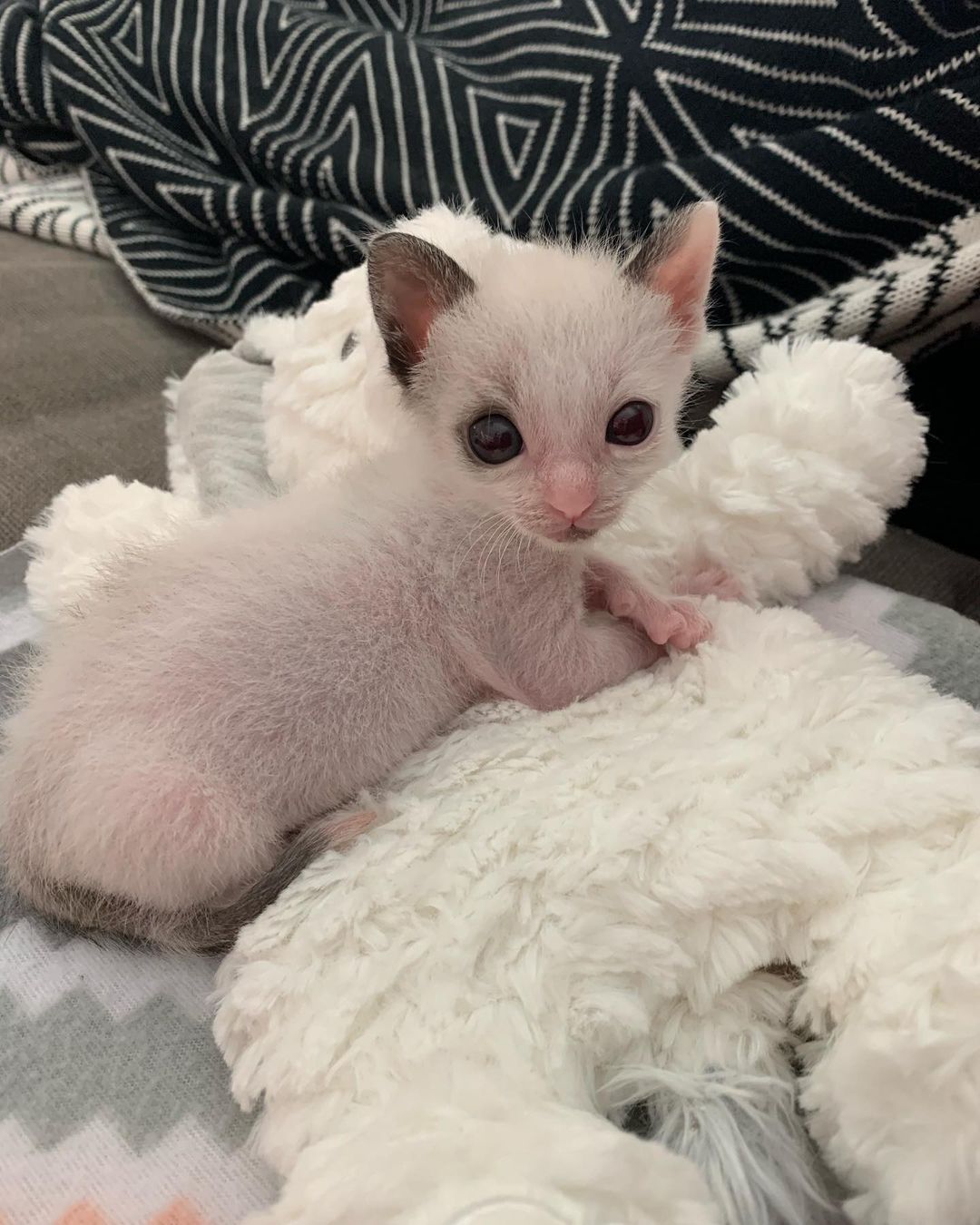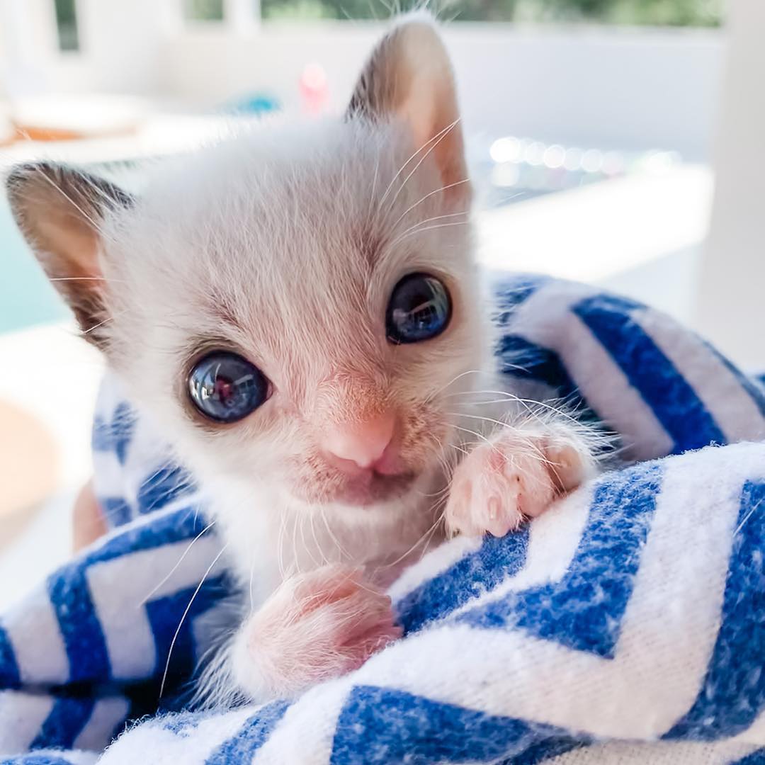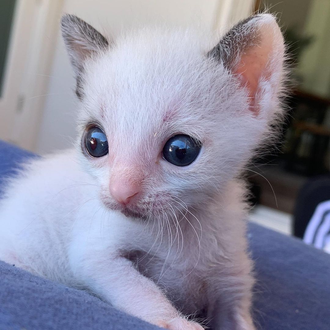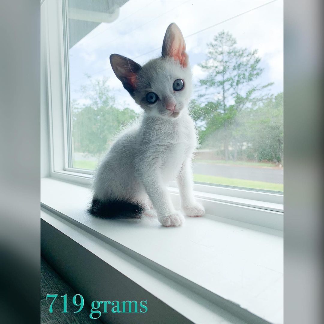 He was still half the size for his age at his first month, but the lovely blue-eyed feline was a terrific fighter and was intent on moving forward with his process, doing his best to keep growing strong.