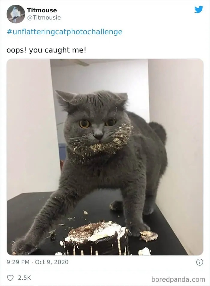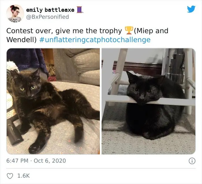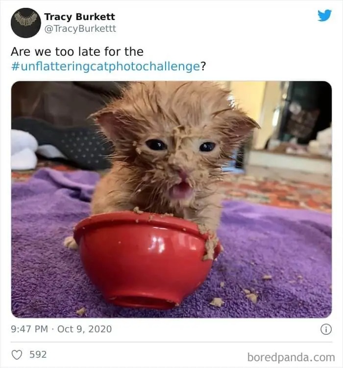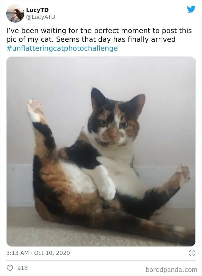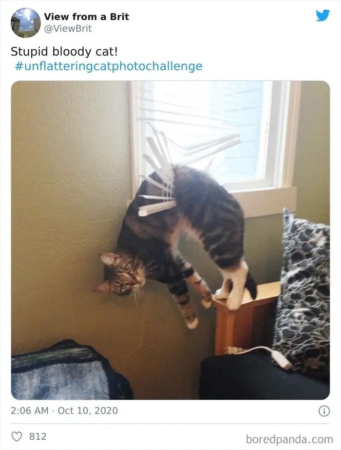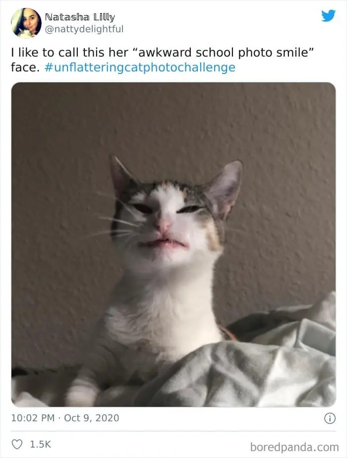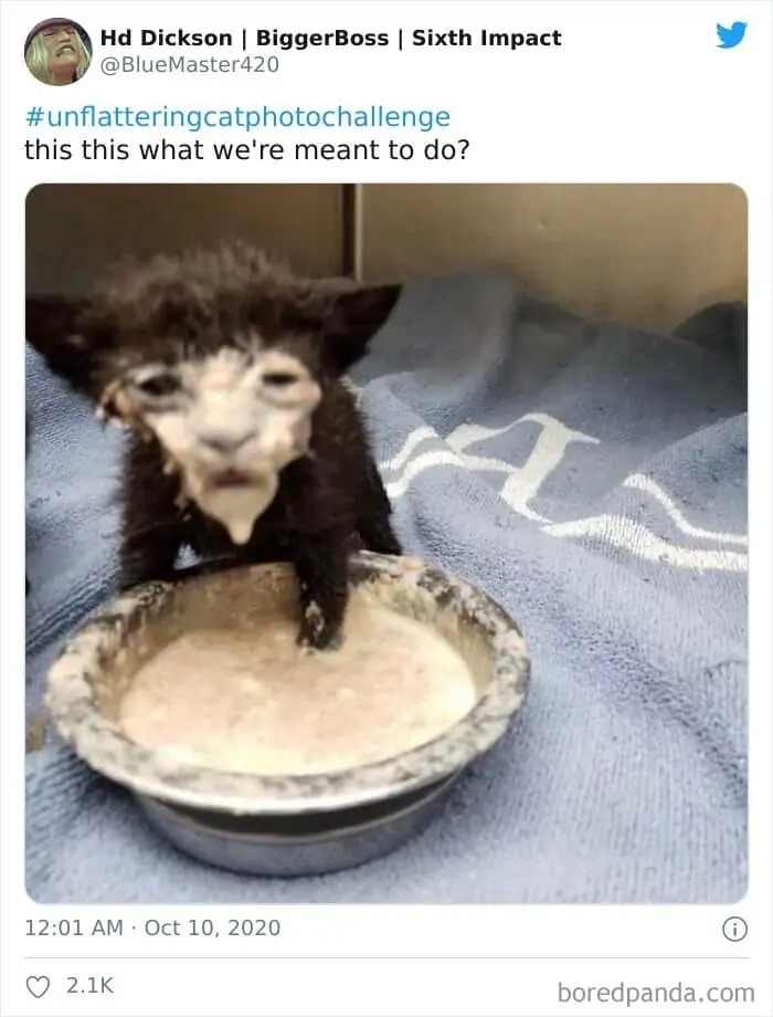 Please join us in welcoming the Unflattering Cat Photo Challenge on Twitter, where cat owners share their oddest and most unphotogenic cat photos. These are some of the best entries that illustrate the best of the worst of feline images, from bratty bois hissing and baring their teeth to the bestest gals displaying their uncomfortable school photo smiles.