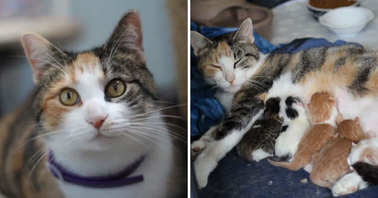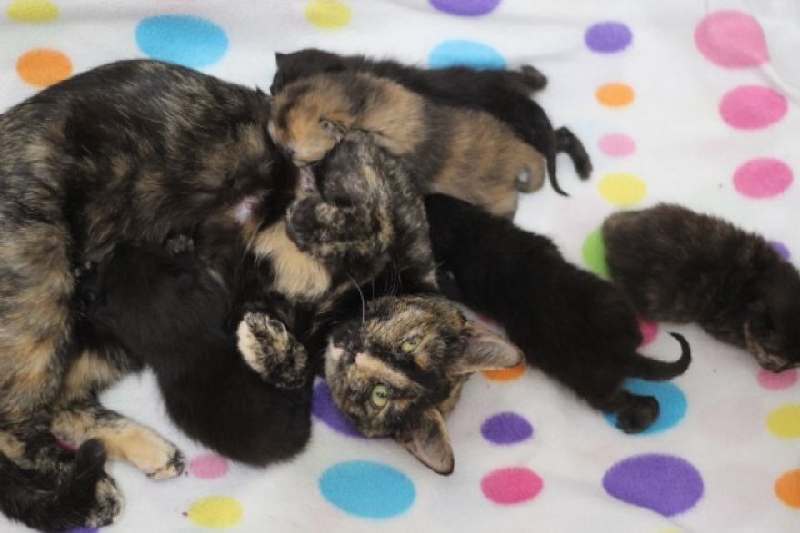 Harmony was saved from a kill shelter last July and her kittens were born the day after she arrived in foster care