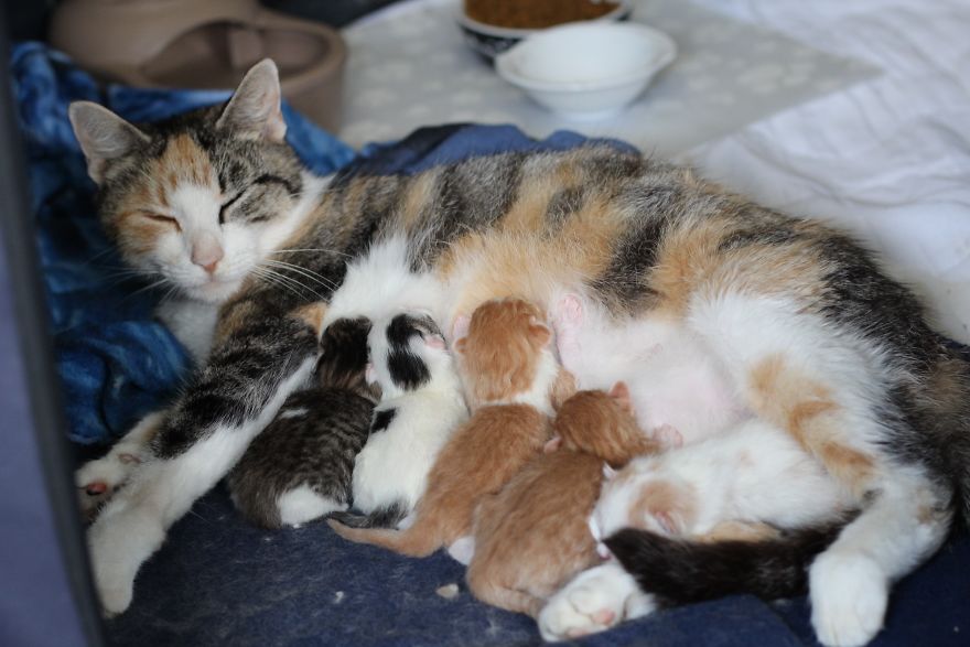 Mimosa was a good mother to her kittens and they all grew up strong and healthy