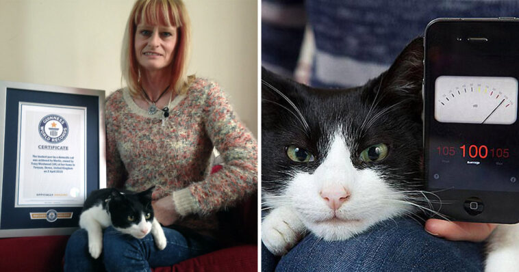 Merlin measured 67.8 decibels for confirmation by a Guinness World Records examiner, surpassing the previous record of 67.68 decibels set by another British cat, Smoky, in 2011. They said Merlin’s purr was as noisy as a conversation or an air conditioner and nearly as loud as a shower or even a dishwasher.