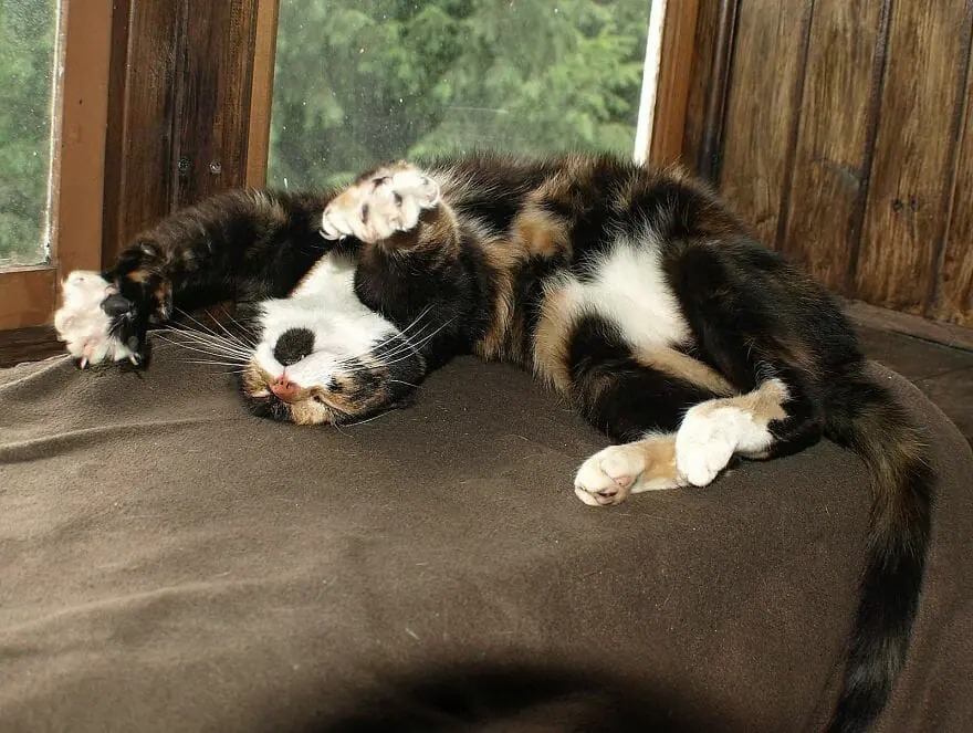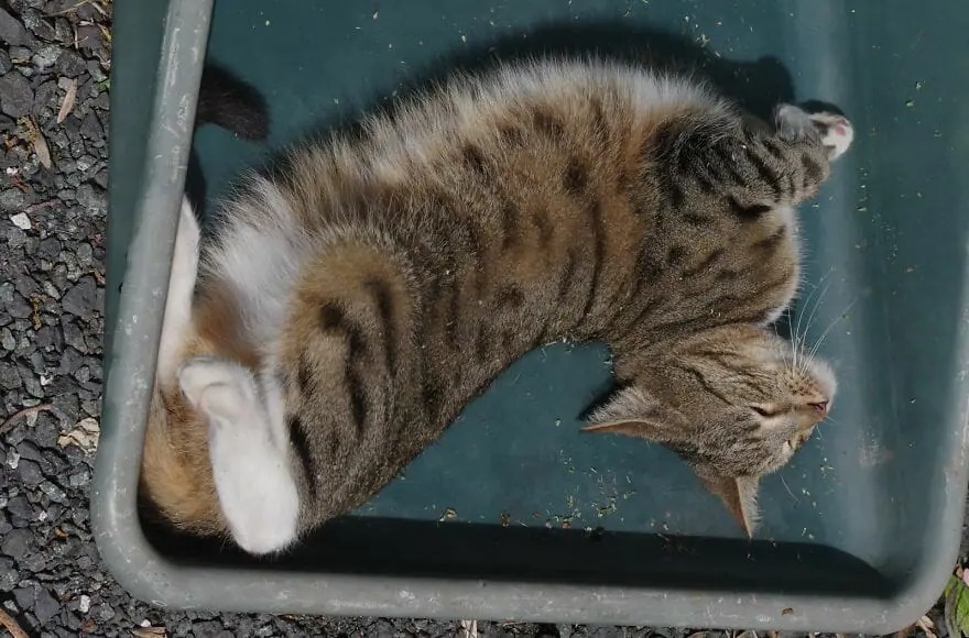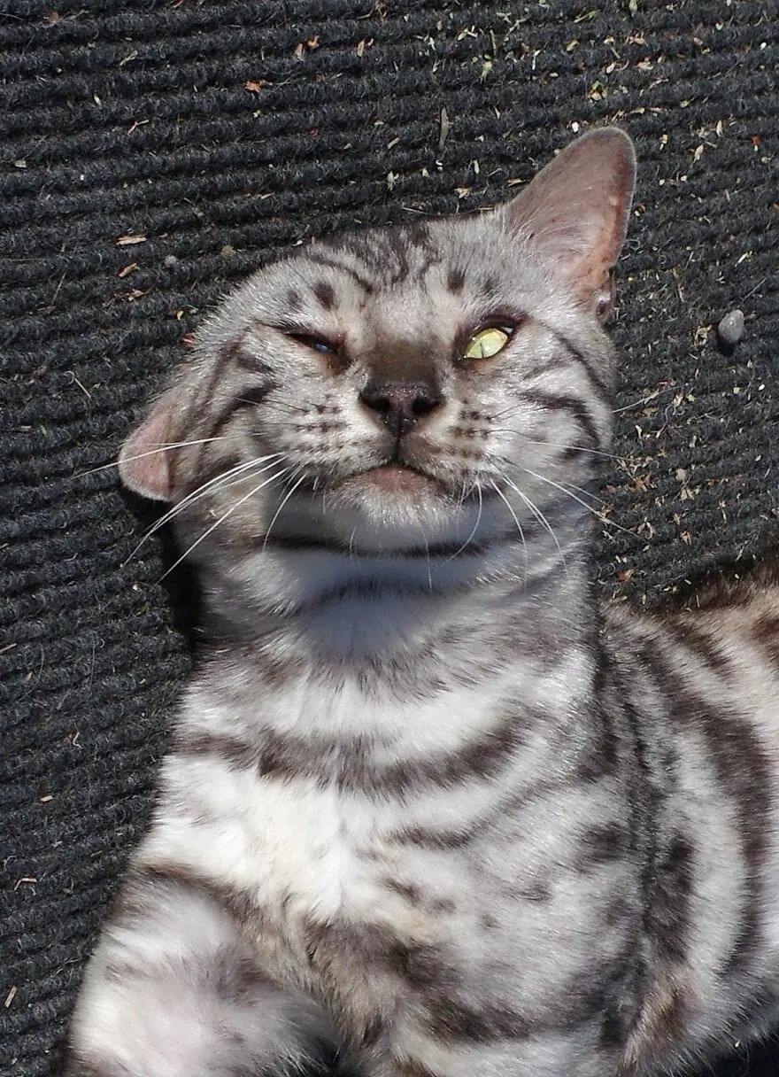 Turnip Tower is the real crazy cat dad: He currently has two cats – Melchett and Gertrude. Melchett had one eye removed due to a cataract last year, and Gertrude had both eyes removed this year, for the same reason as Melchett. However, he used to have more than 2, all of his cats have been named after characters and animals in the TV show Blackadder, such as Mildred, Miggins, Meg, Percy, Bubbles, Turnip, Baldrid, Mrs. Miggins, Edmund. Some feline friends are adopted from rescue centers, but many just came to his door, hoping to be fed and find a shelter, and ended up staying in the family for years.