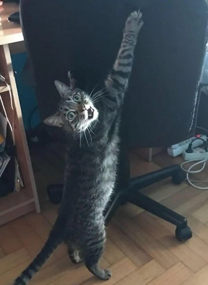 #3 “Sometimes, my cat likes to stand up on his back legs, like a meerkat.”