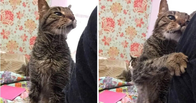 The tragedy happened when Orion the cat lost his only home where he grew up and spent his life on. He was anxious and shut the door to anyone who came to him. Then a 16-year-old kitty was brought in temporary place at Kitty Adventure Rescue League, a cat sanctuary in Fort Worth, Texas in March. He was not used to the new environment at first, always found a place to hide for a week.