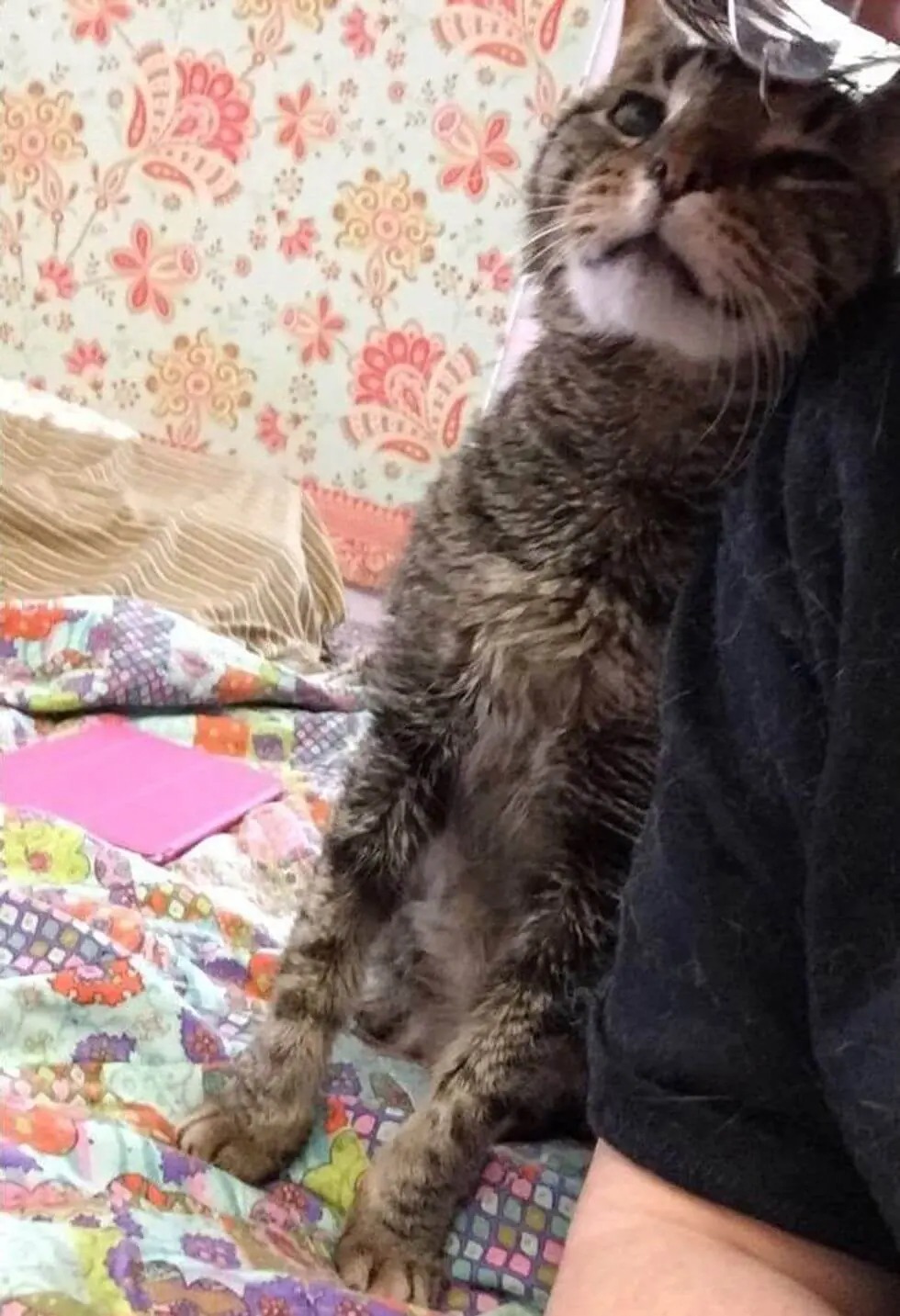 He had a new home after that and another cat Britches who came to comfort Orion gave him lots of purrs.