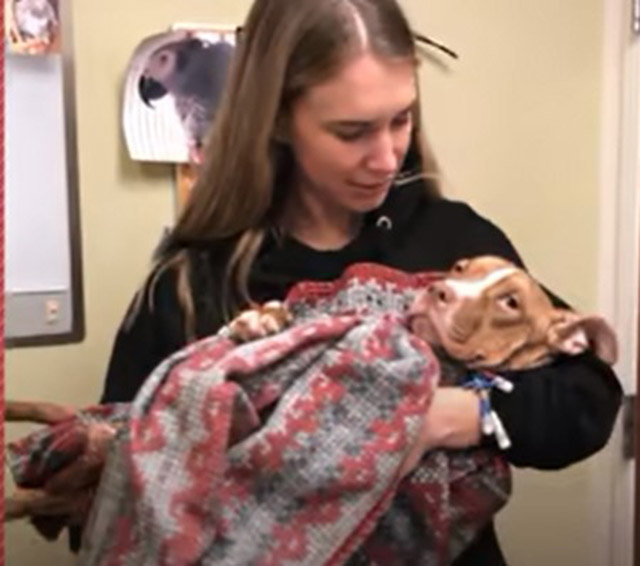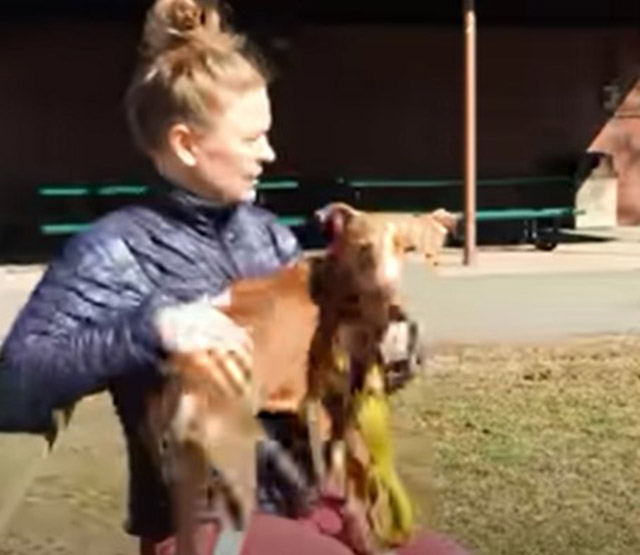 Animal Control was called in and they reached out to a local rescue, called Jersey Pits, hoping they could save her life. They sent over a photo of the dog lying in the back seat of their car.
