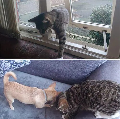 #7 This kind cat who brought a stick inside for their favorite pupper