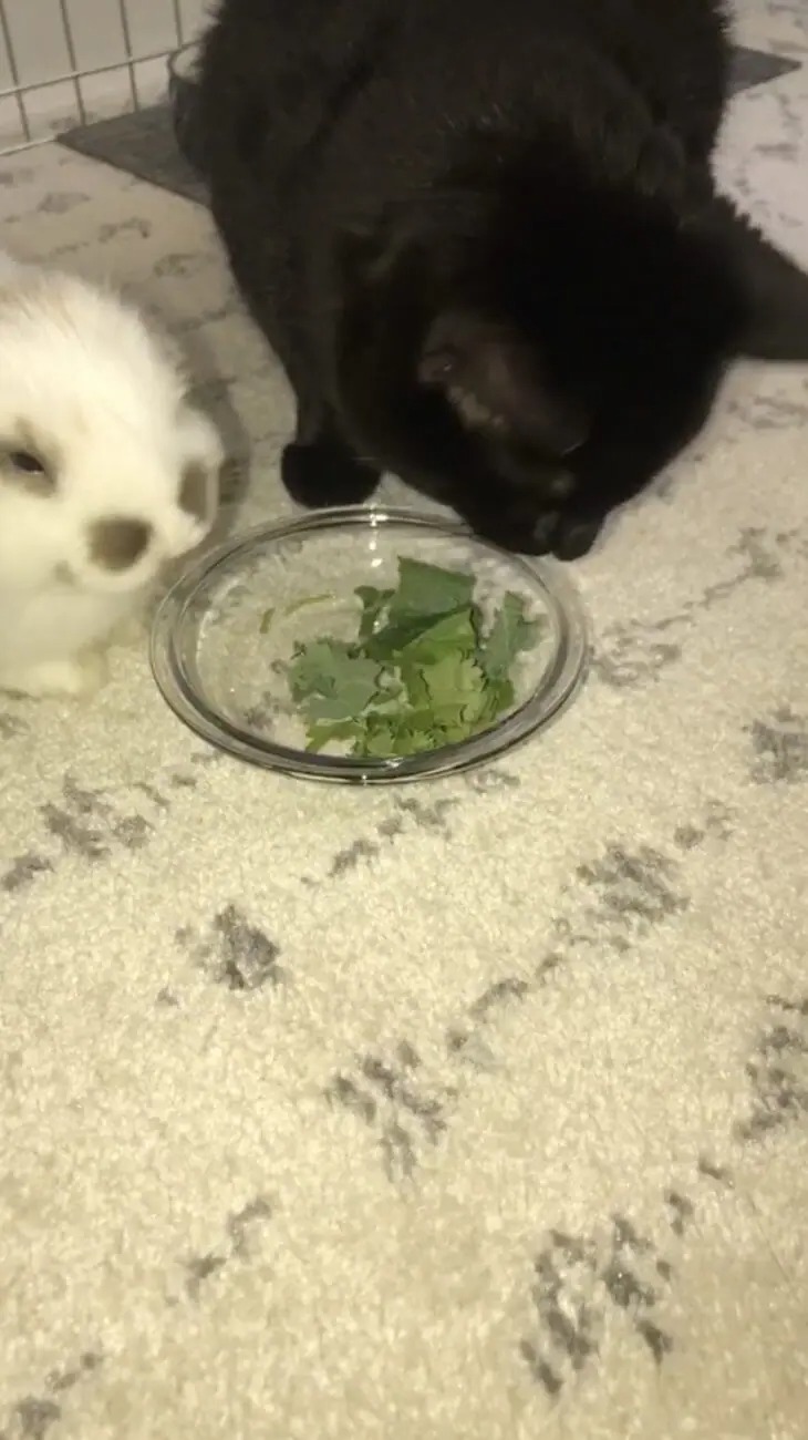 #15 This cat that didn’t care much for veggies but pretended to eat them so their bunny friend didn’t dine alone