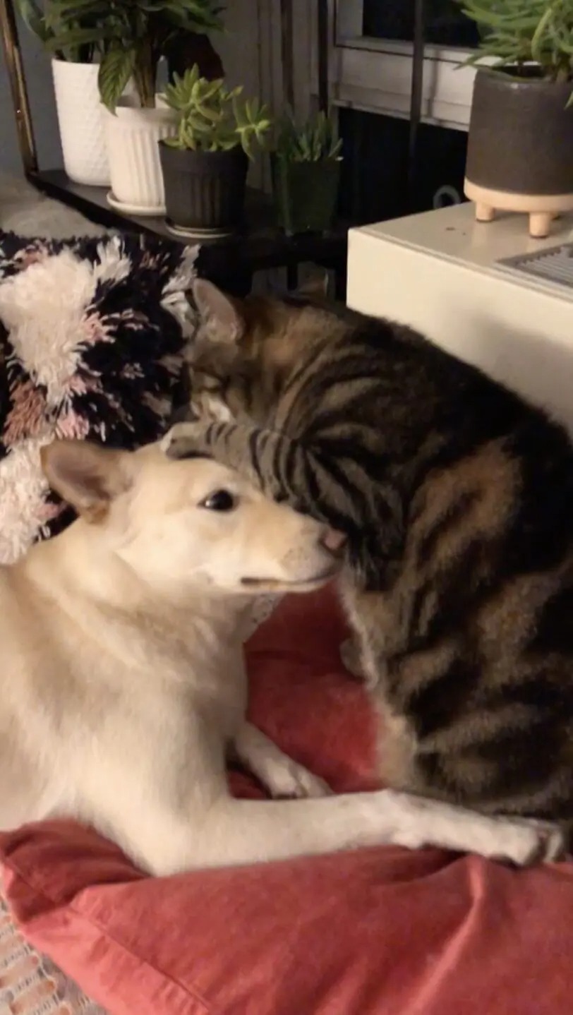 #17 This kitty whose best friend is a doggo that loves being groomed