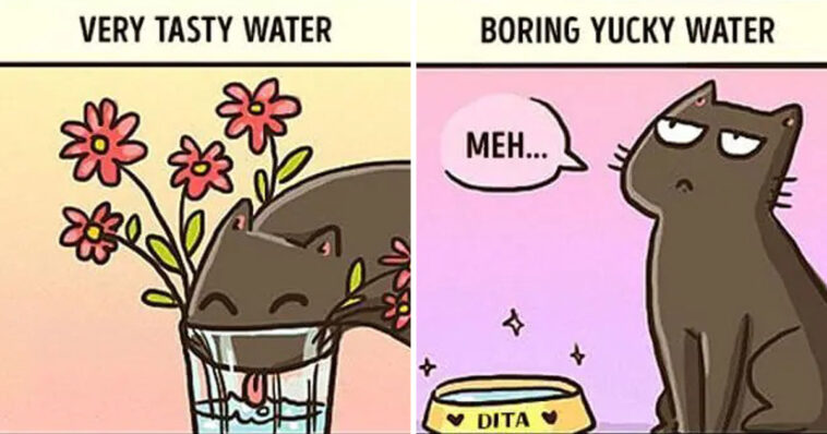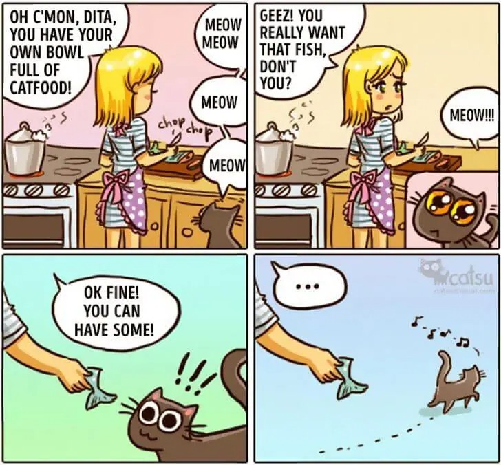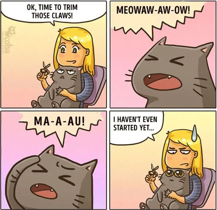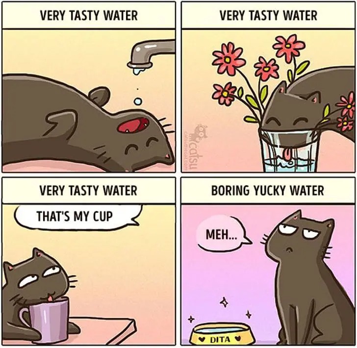 Pssst psst, you don’t have to pay a ticket to go to the roller-coaster in the park while you are having a domestic cat. Cat lovers always have a joke “We don’t adopt cats, cats adopt us” and that is so true so the cartoonist under the name catsuthecat – a small family business based in Tallinn, Estonia depicted purrfectly how would it be when you live with a cat. The main star in this comic strips is a grey British shorthair kitty named Dita with her fabulous cattitudes.