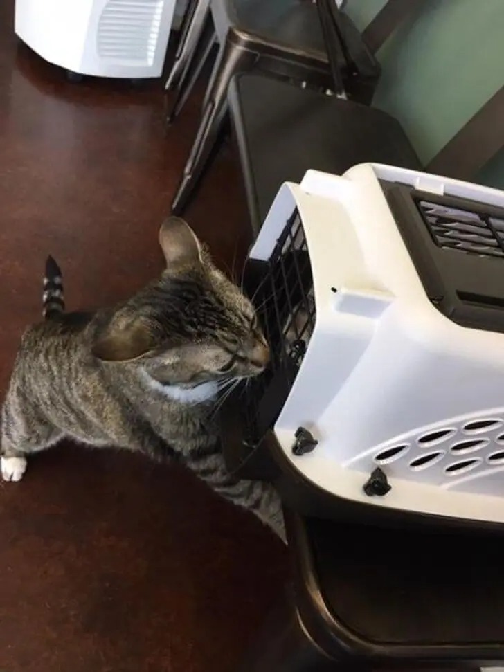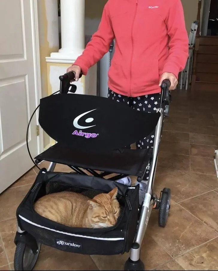 #20 “My grandma just got out of the hospital and now uses a walker. My cat now acts as her lazy bodyguard”
