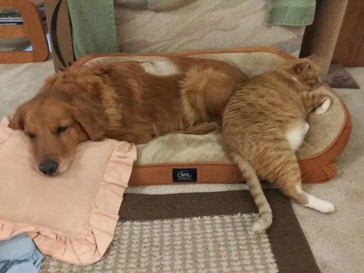 #1 “She’d been at the vet for a while, and her ace big bro stayed this way all day when she got back”