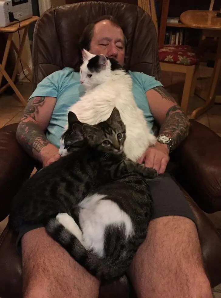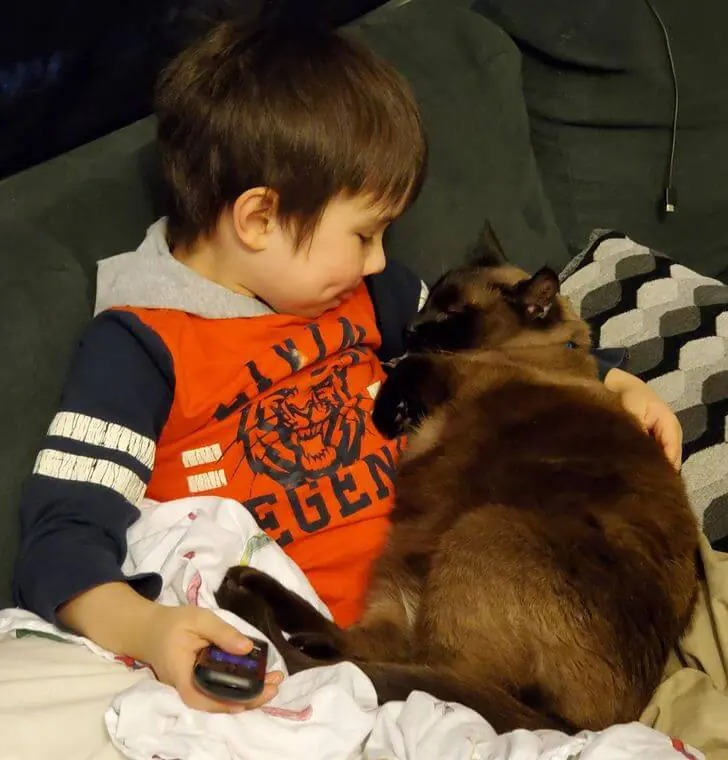 #13 “The shelter said that Odin the Cat was not cuddly and that he did not like children. This was Odin the day after we brought him home”