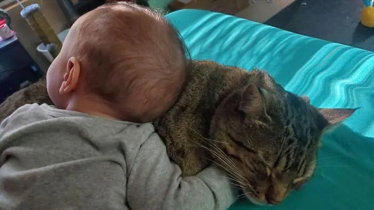 #10 “Ever since my son was born, this cat thinks it’s his duty to protect him”