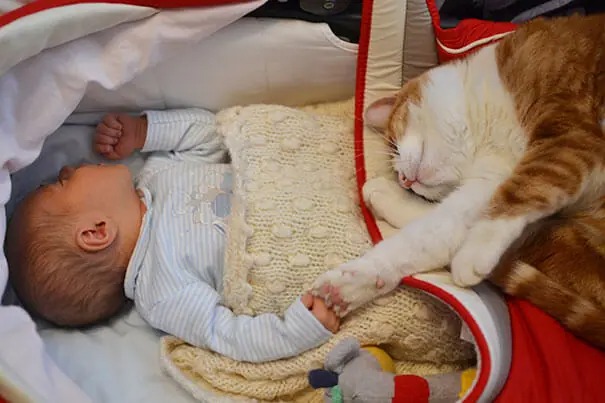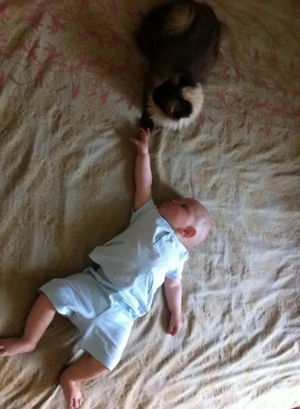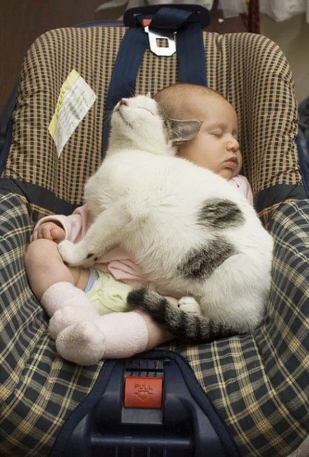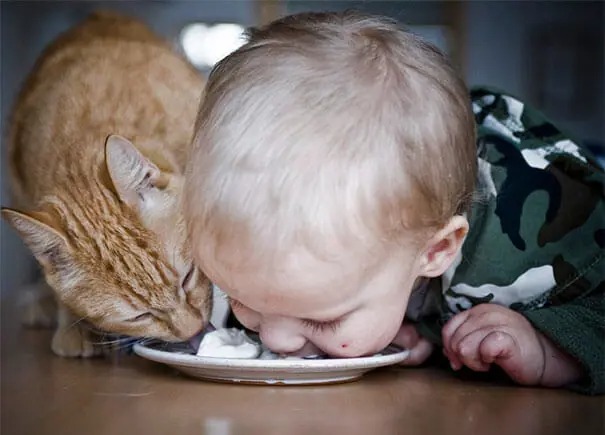 How can we clearly know that they are born to be friends forever? Whatever the baby does, a cat would be there, or they would ‘copy cat’ your kid’s actions. You’re thinking about it in reverse? You’re definitely right either! Children tend to mimic everything they see, not except the cat.